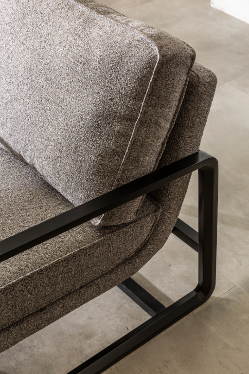 The CROSS Armchair blends bold industrial lines with inviting comfort, making it a striking piece in any modern living space. Its structured metal frame contrasts beautifully with the plush, oversized cushions, offering a balanced mix of durability and softness. Designed to deliver tactile and visual satisfaction, Cross is perfect for lounges, waiting areas, or reading corners where both style and relaxation matter.