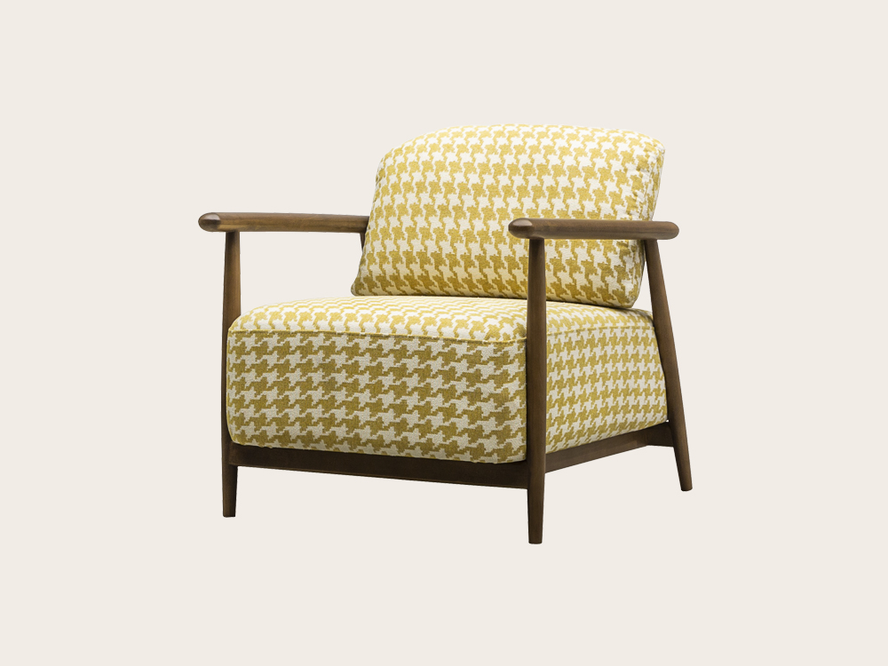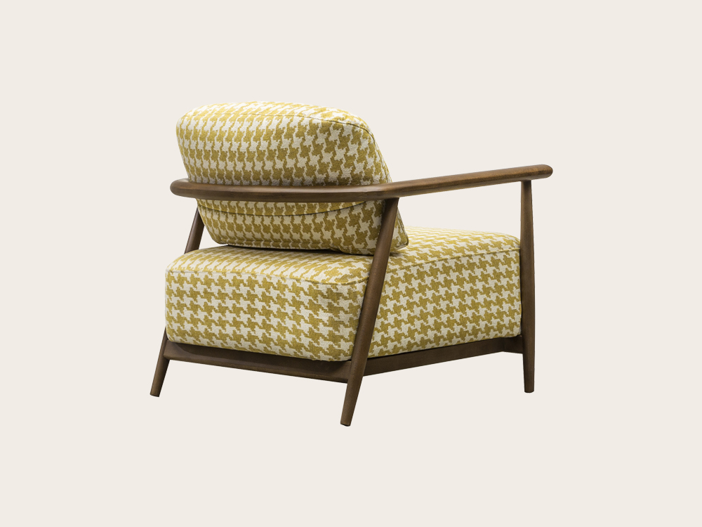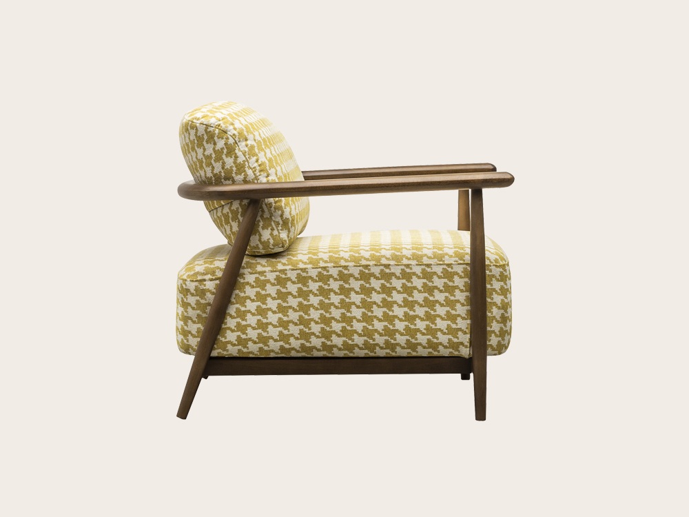 The NATY Armchair combines vintage charm with modern craftsmanship. Its solid wooden frame and open arm design create a light, elegant structure, while the patterned upholstery adds personality and warmth. Designed for both comfort and style, the Naty Armchair is ideal for living rooms, lounges, or reading corners. Its balanced proportions and inviting seat make it a timeless addition that enhances any interior with character and sophistication.